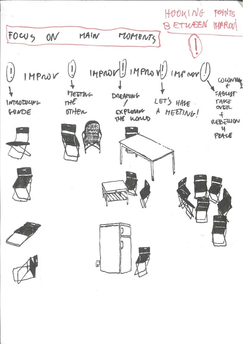 A multitude of GUNDE is then introduced to further complicate and mathematically enlarge the possibilities at play. From placing the chairs conversing among their similar or against their different (pre-existing domestic furniture)to taking rigid poses, becoming passers-by and by-standers, or enacting anthropomorphic iconic scenes such as sex and funeral.